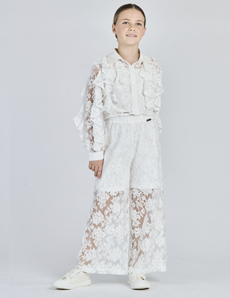 CAMICIA CON VOLAN IN PIZZO – “PIZZO 70% CO 30% NY TESSUTO 100% CO INT. 92% CO 8% SP “