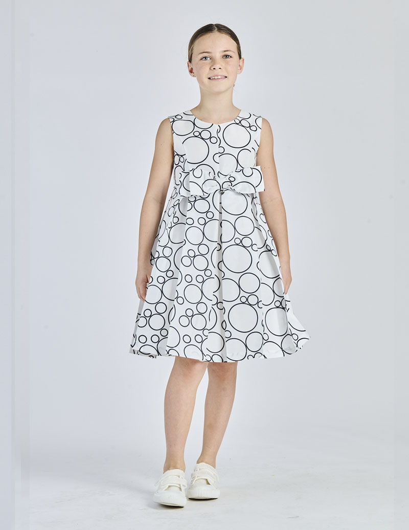 SCAMICIATO POIS GRANDI CON CINTURA FIOCCO – “EST. 100% PLINT. 1¿STRATO 100% CO2¿STRATO 100% PL”