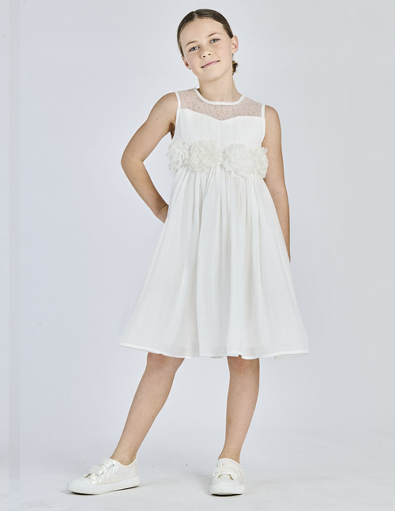 ABITO CON FIORI IN VITA – “EST. TESS 01 100% NYTESS 02 70% TN 30% PLINT. 1¿STRATO 100% CO 2¿STRATO 100% PL”