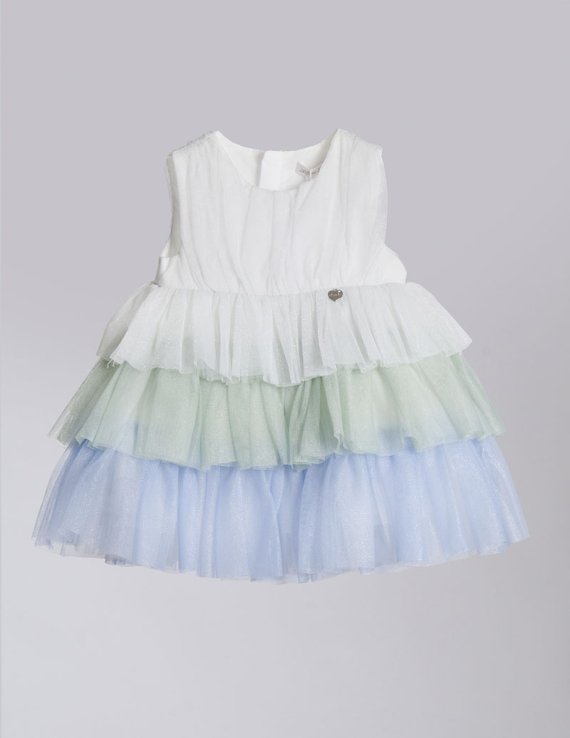 ABITO NEWBORN SENZA MANICHE CON GONNA BALZE A PALLONCINO – “EST. 100% PLINT. 1¿STRATO 100% CO2¿STRATO 100% PL”