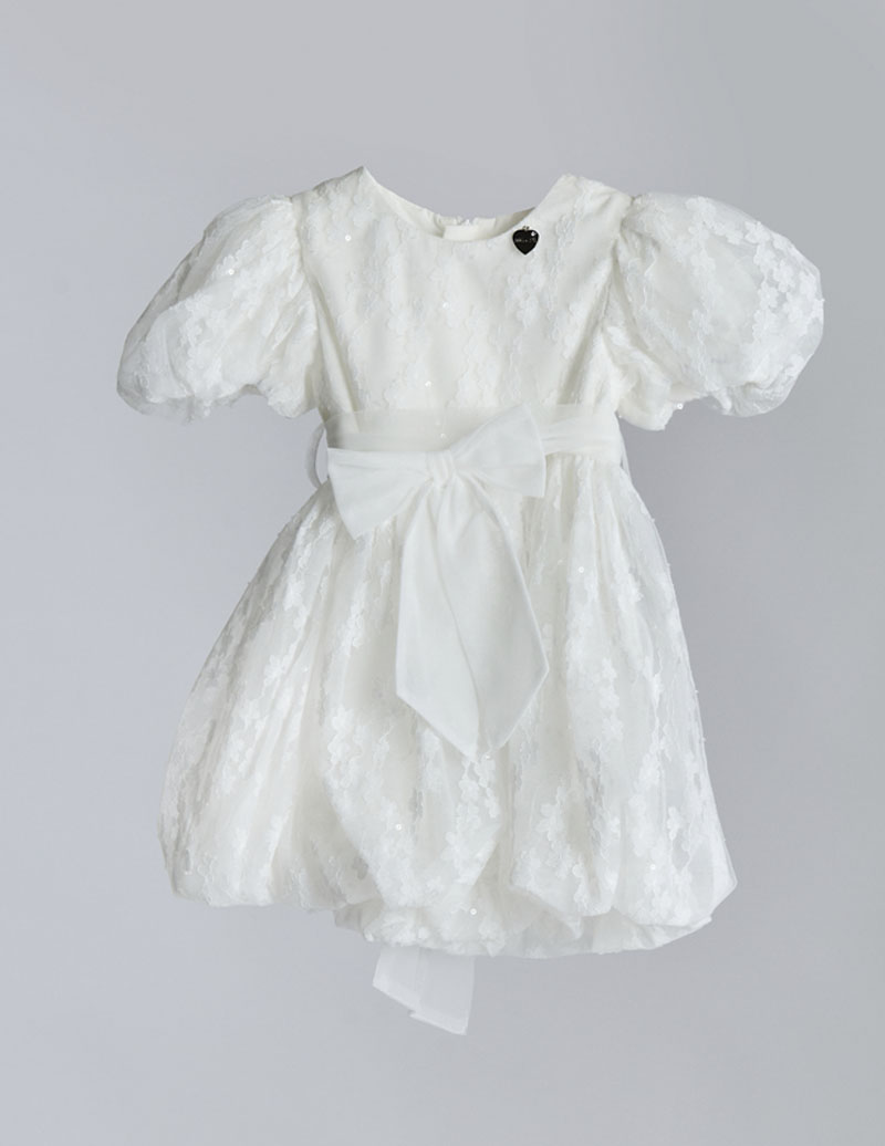 ABITO NEWBORN CON MANICHE E GONNA A PALLONCINO – “EST. PIZZO 100% PLTULLE 100% PLINT. 100% CO”