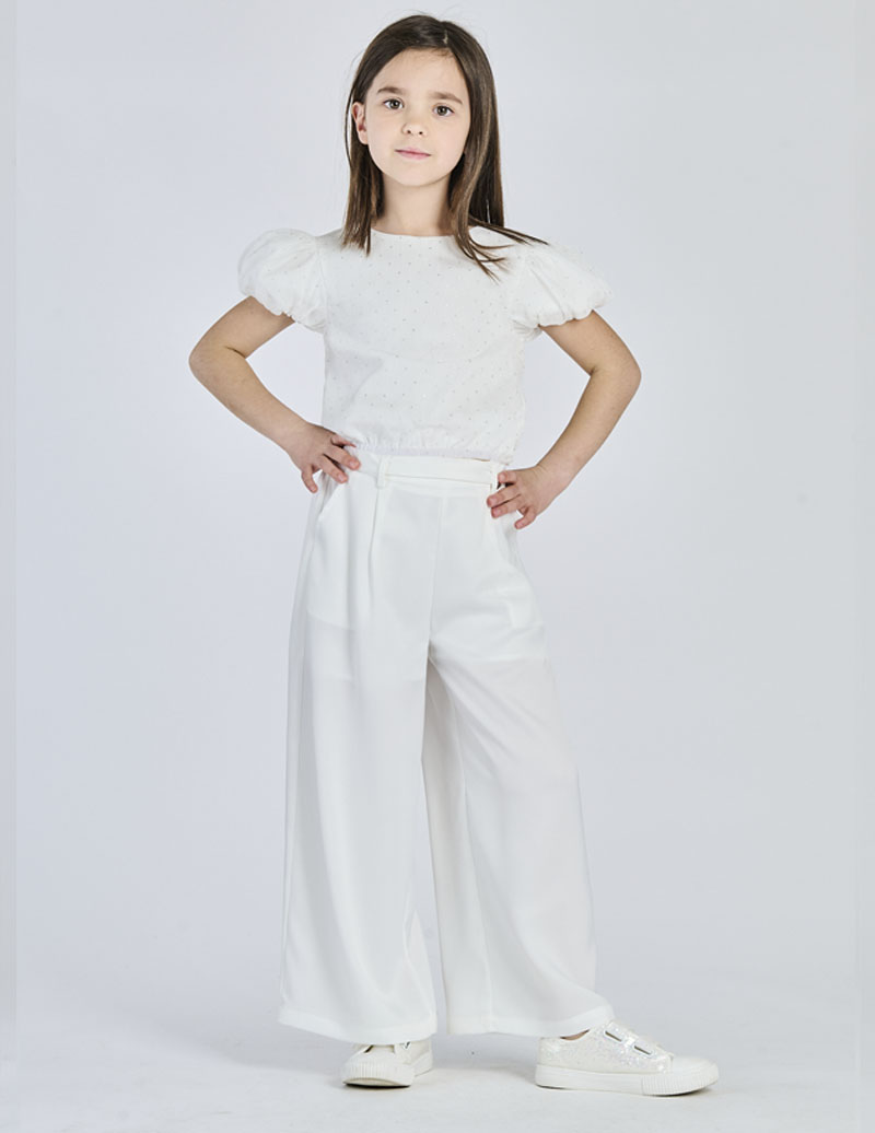 CROP TOP MANICHE A PALLONCINO – “EST. 100% PL INT. 92% CO 8% SP “
